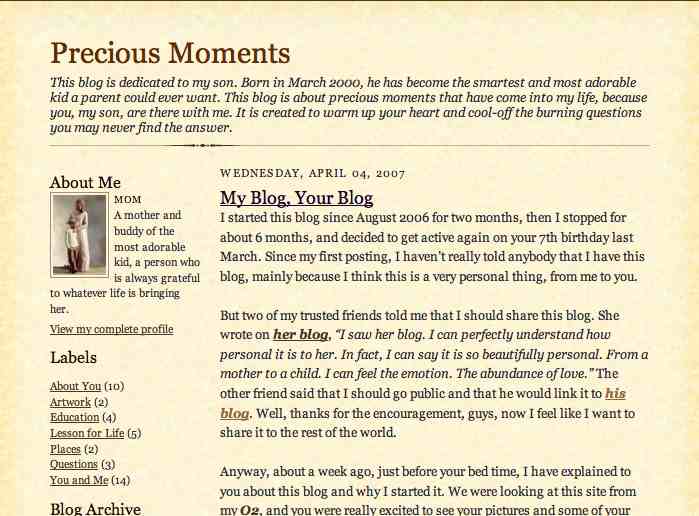 It is a series of lyrical and often moving posts to her son as they face each new day and meaningful experience in his passage through life. Recording their precious moments along the way. Bet many of you didn’t think PR people could be so sensitive or caring.