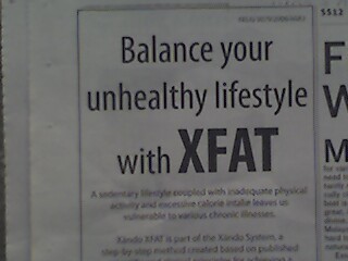 XFat just cuts through all the adipose tissue surrounding other heath ads and gets to the point: Balance your unhealthy lifestyle.