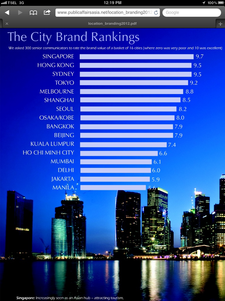 How well does Jakarta do when it comes to location branding (a fancy modern word to substitute for reputation of a place)?