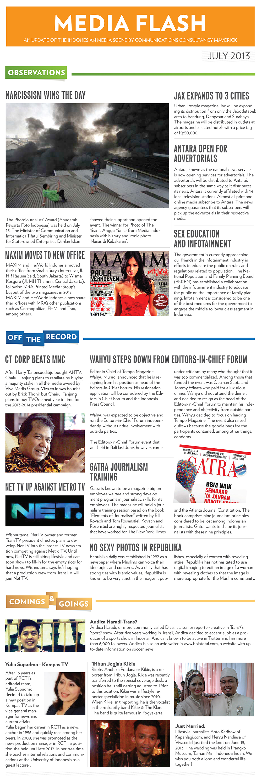 The specialist will also oversee the production of Maverick’s monthly newsletter Media Flash (latest copy below), that chronicles the goings on in the media industry.