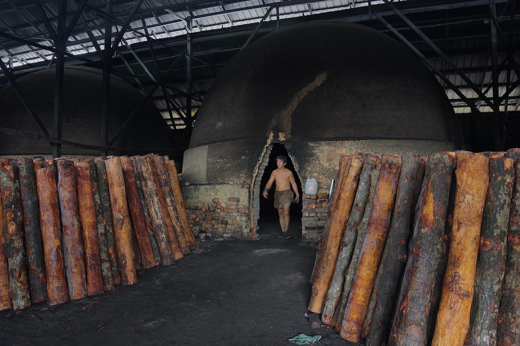 Making charcoal the traditional way, with mangrove tree stumps and a charcoal fired kiln
