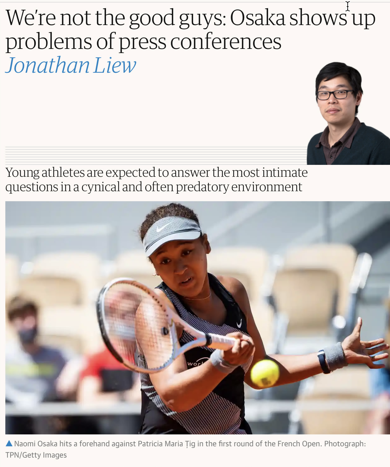 Firstly, Osaka deserves our sympathy because the media can be inane. How inane? see this article in Vice.